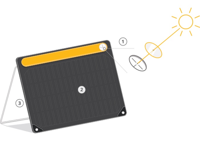 Get smart power from the sun with the portable BioLite SolarPanel 10+. Power tablets, phones, and other gear with 10 watts of usable electricity. Featuring BioLite's Optimal Sun System, an integrated sundial aligns you to the sun to capture direct rays while a 360 degree kickstand simplifies positioning on uneven terrain. The folding design makes it easy to pack for any adventure. Use energy in real-time or store for later with the integrated 3000 mAh battery.