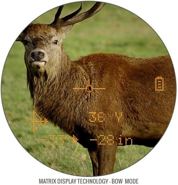 Bow Mode - provides line-of-sight, angle, and true horizontal distance from 10-99 yards/meters