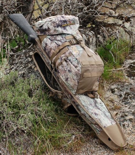 The H2 Gunrunner is a minimalist, lightweight rifle pack that's designed for hands-free hunting and quick access to your rifle. It gives you just the right amount of stowage for personal gear for a day's outing. The top compartment is a good size for range finders, calls, etc., and the main compartment is sized for a day's worth of food and clothing.
