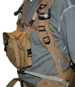 Worn as a chest pack, the A2MP is suspended from your pack's harness. The pack carries the weight of the pouch and its contents beautifully, so you don't notice that you're carrying binoculars, etc.