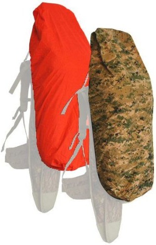 Our Reversible Waterproof Rain Covers are tailor made to fit our backpacks. Why offer a rain cover when our pack fabric is waterproof? In driving rain, it's impossible to keep the innards of a backpack dry without an honest rain cover. If you're going to be out for an extended trip in wet weather, or you'll be bivvying your pack, you'll appreciate having a nice rain cover along. |