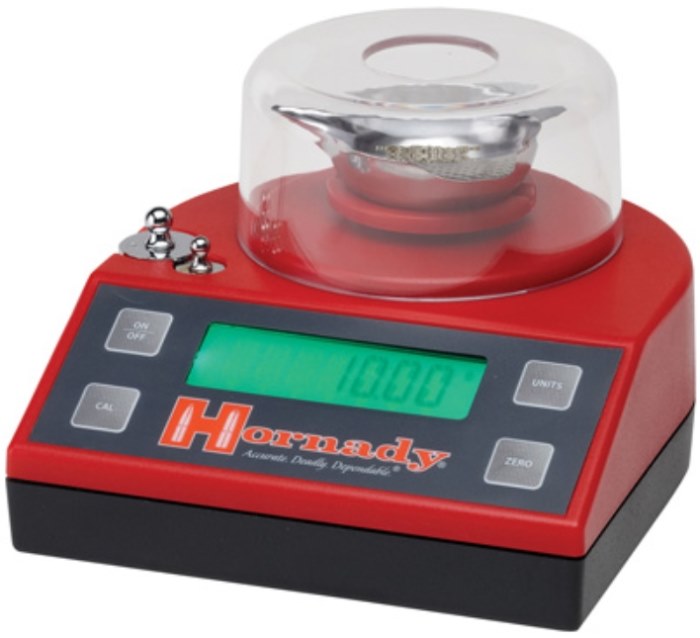 The Hornady Lock-N-Load Bench Scale is designed with performance in mind, and is a great addition to your reloading bench. The Bench Scale uses the same high quality precision load cell that is found in the Lock-N-Load Auto Charge. This scale features quick setup, large LCD display, easy to use tare function, calibration, and the ability to change units. With a 1500 grain capacity, the Bench Scale is perfect for weighing powder, bullets, cases, and cartridges. The large LCD display is easy to read and weighs precisely to one tenth (0.1) of a grain. Included are two calibration weights, AC adaptor, 220V adaptor, and metal powder pan. |