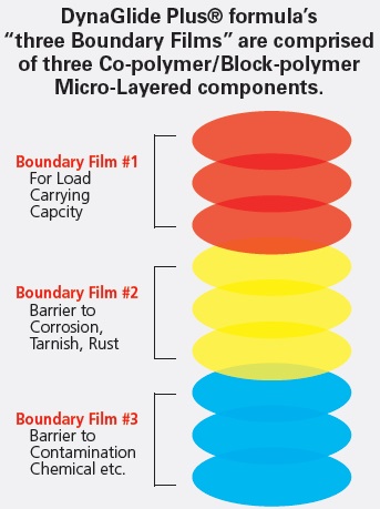 DynaGlide Plus® Dry boundary films Conditioners/lubricants provide a broad spectrum of protections through engineered, three boundary (micro-layered) film formulas.