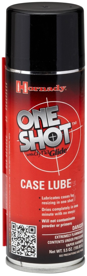 Hornady One Shot Case Lube is the most popular reloading cartridge and tool lubricant in the market, because; Case Lube is a dry film “Boundary” lubricant that is non-hazardous, does not contaminate powders or primers, and the “DynaGlide”™ technology exceeds US Military & NATO load carrying capacity requirements by 6 times. Precision shooters appreciate One Shot Case Lube’s clean, non-sticky, quick and easy application when loading large volumes of rounds at a time. The flexible all-purpose dry film lubricant use on their other reloading tools is a major bonus. Lube entire blocks of cases in one shot. Dries in minutes. One Shot is a non-petroleum product that will not contaminate powder or primers. |