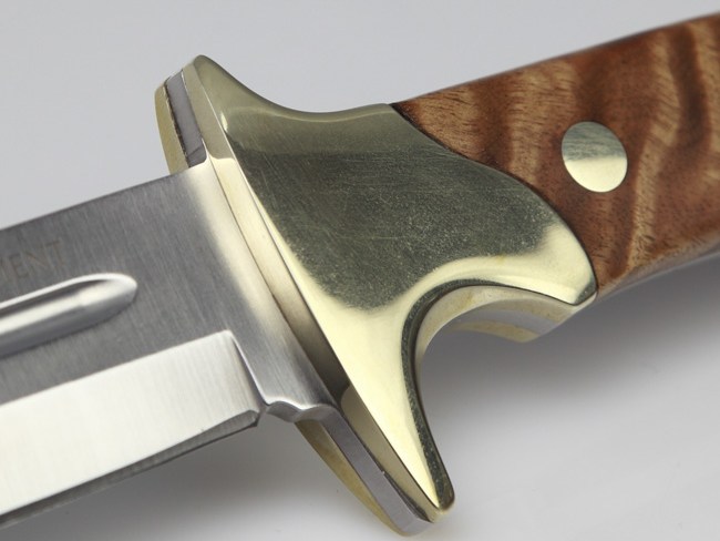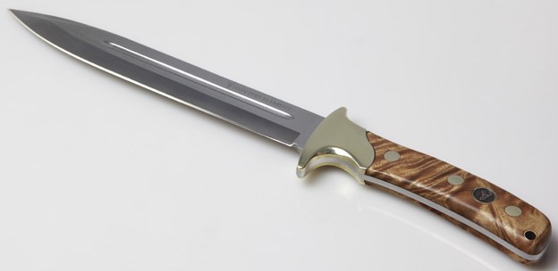 The Classic™ Series Pig Sticker is hand crafted using the finest materials, fittings and workmanship. Constructed using a screwed design, the Classic™ Series Pig Sticker features a natural maple burl wood handle, highly polished brass bolster and a premium quality 5cr15 stainless steel blade that holds an edge pig after pig. The blade is hollow ground with a blood groove and brushed finish. 5cr15 alloy was selected for the blade due to its specific chemical make up.