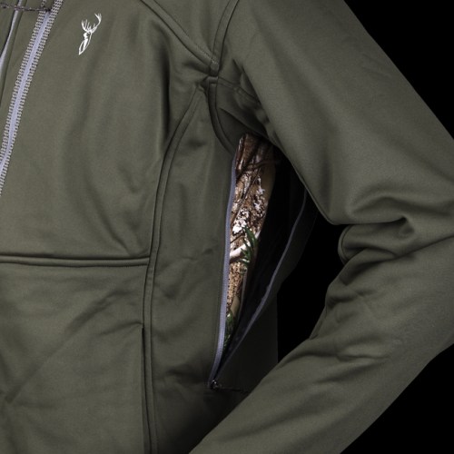 The Core is designed to be used 90% of the time. From charging up ridges, glassing slips to lounging round the hut. This garment is extremely universal and will soon become your favourite hunting top. Hydrafuse Storm Cut™ high loft fabric combined with our Stealth Soft Shell outer cuts wind and light showers, whilst providing exceptional warmth to size ratio. 30% Warmer than conventional wind block fleece without the water retention. Two way stretch fabric allows optimium movement. System wide compatibility means this garment works with all Hunters Element garments. Large pit zips regulate temperature and enable you to wear the top for longer, think of them as your own personal air conditioning! |