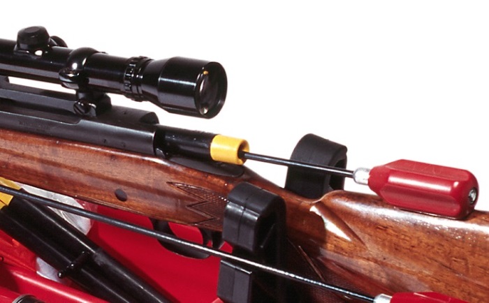 MTM Bore Guides allow you to pass a cleaning rod through a rifle action without dribbing solvent or cleaning agents into the trigger mechanism and magazine. They "guide" the cleaning rod straight into the chamber and barrel, reducing the chance of scratching the chamber area, bending the rod or scraping it against the internal surfaces of the trigger mechanism. |