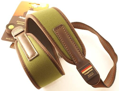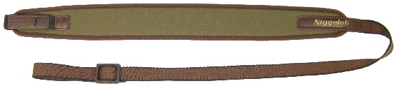 Niggeloh Rifle Sling is made of Soft, Flexible Neoprene Material, which is Extremely Comfortable. Features a non-Slip Shoulder Position and No-Noise Handling. Made in Germany. Olive with Brown Trim. For use with Sling Swivels.