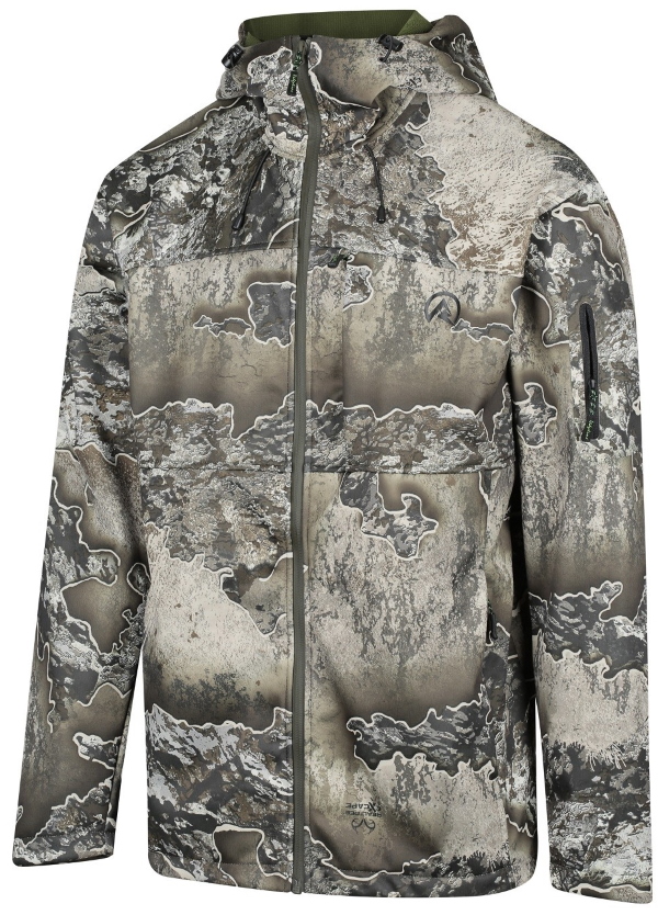 Showcasing the new Ridgeline Excape Camo from Realtree, the mens Ascent softshell gives the edge out in the field while keeping warm, comfortable and quiet with new stretch fabric allowing ample movement.
