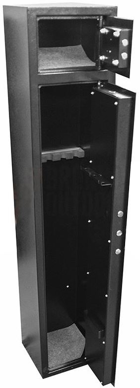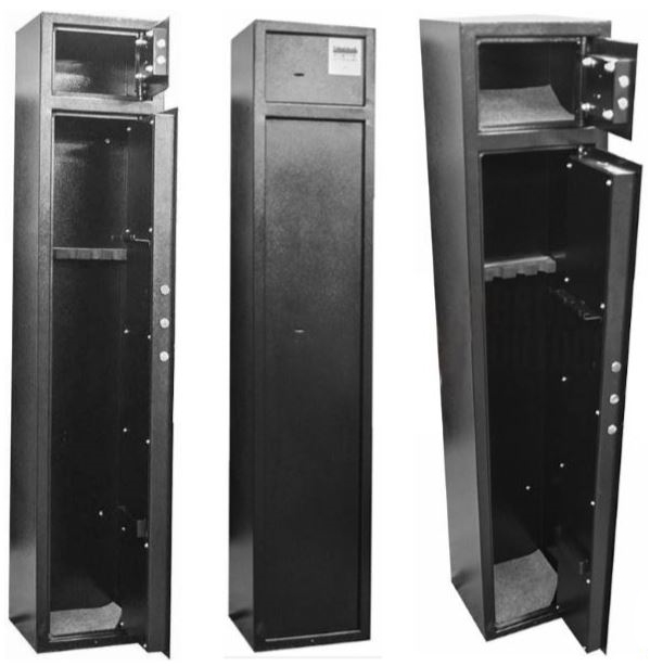 This safe has carpet added to the floor of both cavities as well as rubber moulded racks to keep your firearms neat and protected from damage.