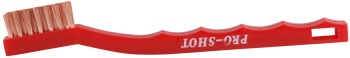 Pro-Shot's gun brush provides cleaning power for powder residues and burn marks. Makes cleaning the face of a revolver cylinder easy. Grooved handle for a positive grip.