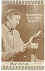 By Master Stockmaker, Bill McGuire. 13 pages, 5½" x 8½". Softbound. An introduction to checkering for the beginner. Explains each tool's function, guides you in selecting, using them correctly. Shows how to lay out a pattern and finish a checkering job. 34 drawings. |
