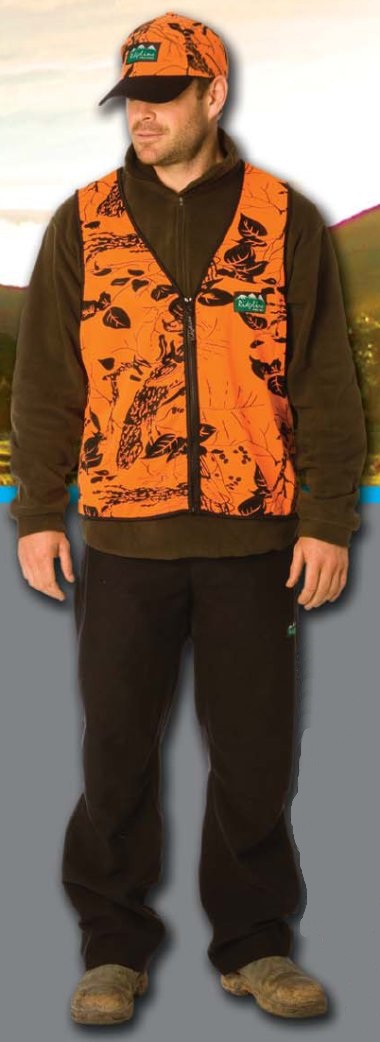 Make sure you are seen with this moisture wicking Blaze Camo vest. Cut to fit over your outer garments with full length zip front for easy on and off. A must have for every bush hunter, certainly a cheap way to stay alive.