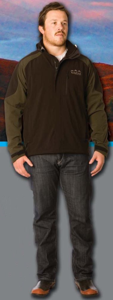 Stylish and dressy, warm and comfortable, we have designed the Razor Back to keep you looking good anywhere, anytime. Check out our classy duo-tone pattern of Olive and Black in this soft-shell jacket that is both smart and tough. We are offering a removable hood, roomy zip pockets, adjustable cuffs and windproof construction along with our guarantee of Ridgeline quality of manufacture.