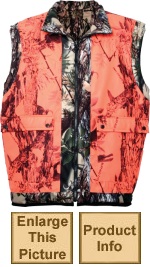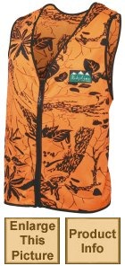 Make sure you are seen with this moisture wicking Blaze Camo vest. Cut to fit over your outer garments with full length zip front for easy on and off. A must have for every bush hunter, certainly a cheap way to stay alive.