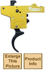 For the discriminating shooter, demanding the utmost performance from their trigger, Timney has created a new line of triggers designed to be robust and yet delicate enough to be set with a pull weight as low as 8 ounces. An engineering accomplishment, the Calvin Elite series of Timney Triggers feature wear components that are made from A2 tool steel, heat-treated to Rockwell 58 and Teflon-nickel coatings. Sears are wire EDM cut and triggers are CNC machine using state-of-the-art robotics. The lightweight 6061-T6 aluminum housings are CNC machined and anodized Timney Elite Gold. |